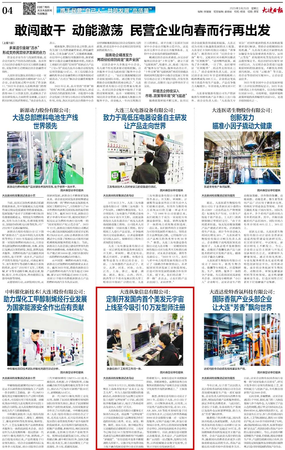 大连日报@执象信息,元宇宙产品引官媒报道 2023-04-17
