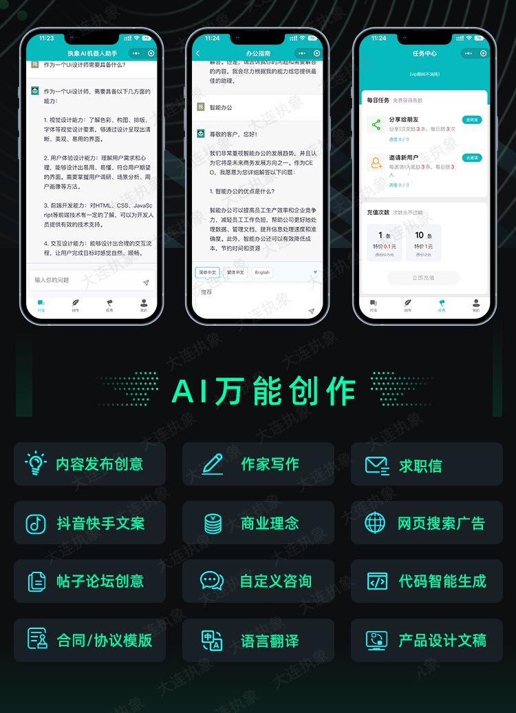 ChatGPT自去年底问世以来,引起了全球范围的广泛关注。其无与伦比的语言处理能力,足可以引领科技圈未来几年乃至十几年的变革,甚至彻底改变人们的生和工作方式。AI时代已然启幕,还在苦于无法翻墙使用ChatGPT吗?执象信息为你排忧解难!国内版Chat AI问答机器人助手上线,流量大,多点盈利模式,源码交付,还不快来免费体验……